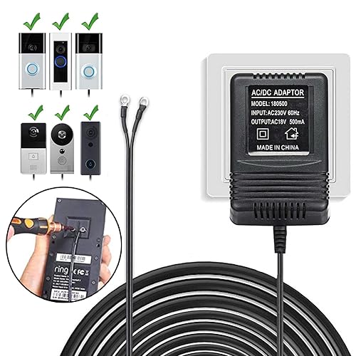 Türklingel Transformator, 18 V 500 mA Video-Türklingel-Netzteil Adapter kompatibel mit Nest Hello Doorbell Ring Video Doorbell mit 10M Verlängerungskabel Türklingel Netzteil