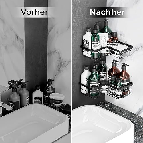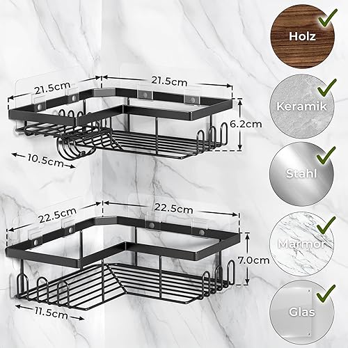 W&S Duschregal 3er Set - Duschablage Badablage ohne Bohren Edelstahl | 2 Badregale + 1 Seifenablage Rostfrei Rutschfest Badezimmer Shower Caddy Duschkorb mit Magic Sticker Shampoo Halterung Organizer