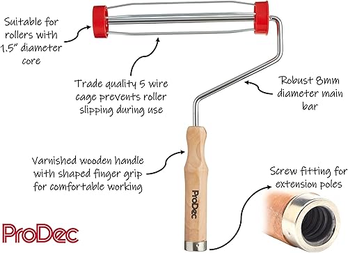 ProDec 225 mm x 38 mm Holzgriff in Handwerksqualität, professioneller Farbrollerrahmen mit rutschfestem 5-Draht-Käfig und verschraubtem Griff für Verlängerungsstange