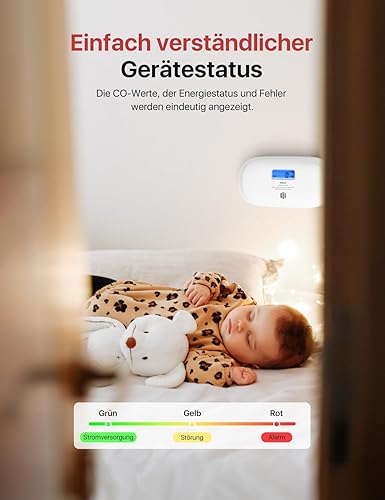 X-Sense Smart Kohlenmonoxid Melder XC0C-iR, Stummschaltung per App, CO Melder mit LCD-Digitalanzeige, Kohlenmonoxidmelder mit austauschbarer Batterie, 1 Stück