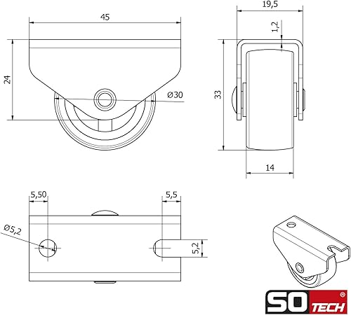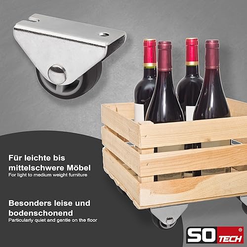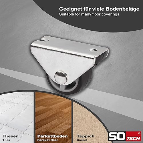 Sotech 8er Set Kastenrolle TRIER (Ø 30 mm, für Seitenmontage, dunkelgrau) Bockrolle, leise und bodenschonend, Ideal für Bettkästen und Bodenschubladen