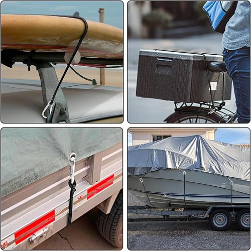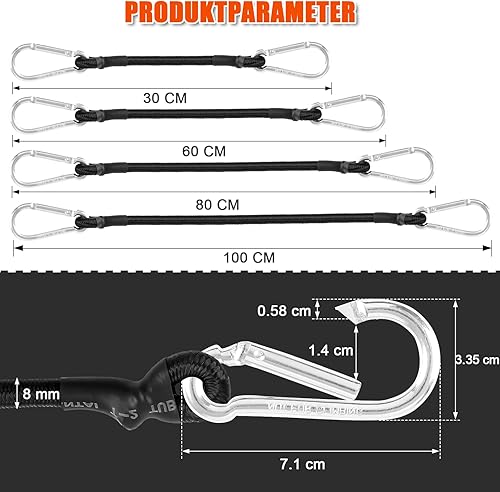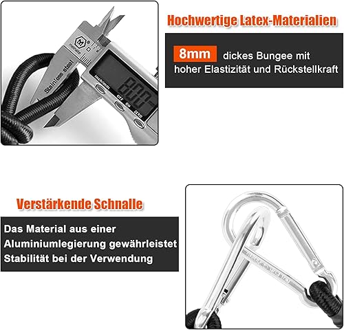 Akicderu Spanngummi mit Karabiner, 6 Stück Expander mit Karabinerhaken, 2 * 100 cm, 2 * 80 cm, 2 * 60cm Spanngurte mit Haken, Starker Gepäckspanner, Gummispanner mit Haken für Camping und vieles mehr