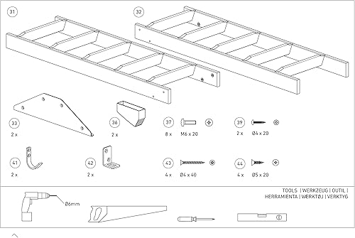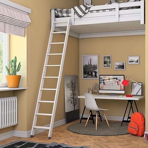 DOLLE Hochbettleiter aus Holz mit 10 Stufen | Geschosshöhe bis 245 cm | In Natur oder Weiß lackiert | Breite: 40 cm | inkl. Fußkappen | Buche Stufen | Kiefer Holm | Anstellleiter (Weiß)