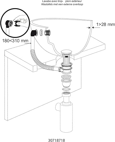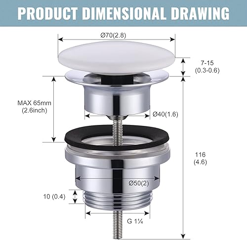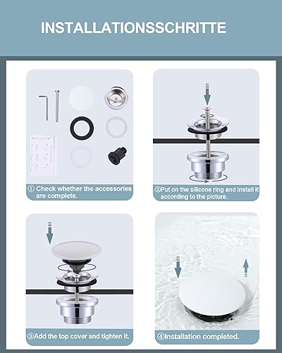 iVIGA Waschbecken Ablaufgarnitur, Ablaufgarnitur mit Überlauf 1 1/4 universal für Waschbecken und Waschtisch, weiß