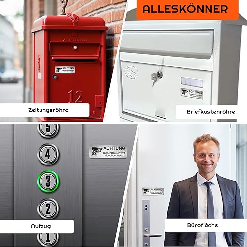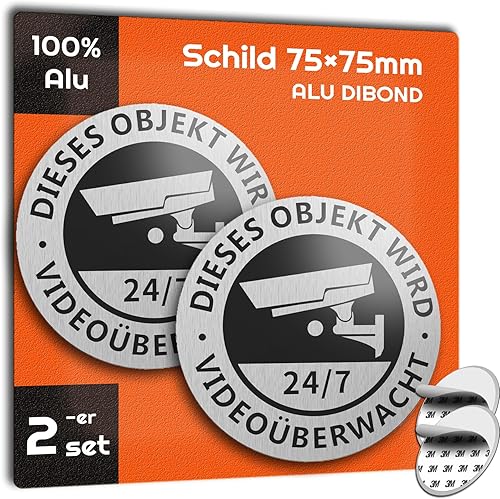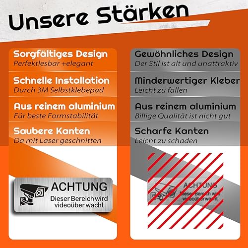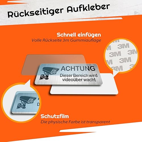 AIFIZO Schild Videoüberwachung 2 Stück 85mm×30mm mit 3M Tape, Gebürsteter Aluminium Achtung Videoüberwachung Schild, Achtung Privatgrundstück, Selbstklebend & Aluminium, Videoüberwachung Schild