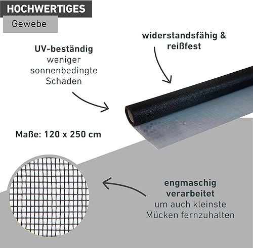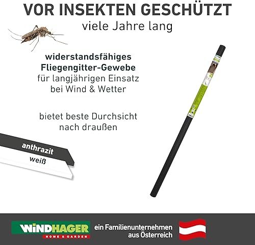 Windhager Insektenschutz Fliegengitter Insektenschutzgewebe aus hochwertigem Fiberglas, maschenfest verschweißt, UV-beständig, weiß, 100 x 250 cm, 03434