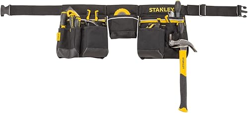 Stanley Werkzeuggürtel verstellbar mit Nageltaschen, Bandmaßtasche, Hammerhalter und zahlreichen Befestigungsmöglichkeiten ohne Werkzeug, 1-96-178