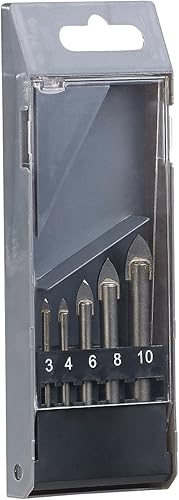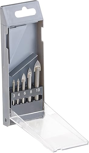 AGT Professional Glasbohrer: 5-teiliges Bohrer-Set für Glas & Fliesen, 4/5/6/8/10 mm, sandgestrahlt (Keramikbohrer, Glasbohrer Set, Hartmetallspitze)