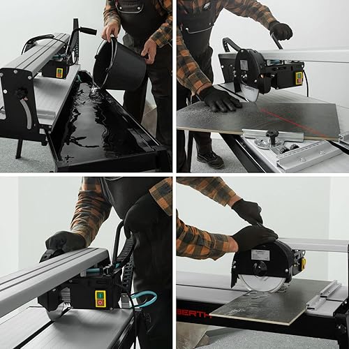 EBERTH Fliesenschneidmaschine Nass, Elektrisch 800 Watt Leistung, 620mm Schnittlänge, Nassschneider mit Tisch, Pumpe und optischem Laser, Elektrischer Fliesenschneider mit 200mm Diamanttrennscheibe
