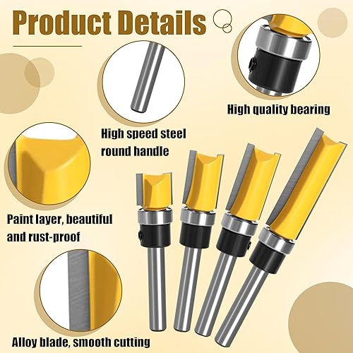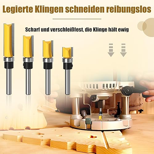 EUIOOVM Bündigfräser Schaft Fräser Oberfräser,4 Stück 6,35mm Schaft Bündigfräser,Professional Zubehör mit Kugellagern,Werkzeuge für die Holzbearbeitung,Bündigfräser für den Holzzuschnitt