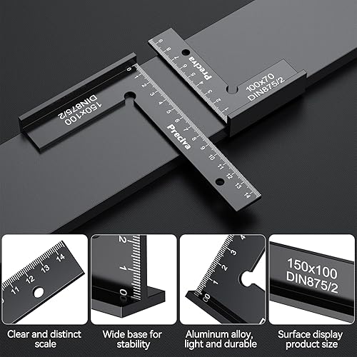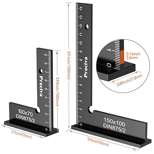 Schlosserwinkel Set, Preciva 2 Stück 90° Anschlagwinkel Zimmermannswinkel mit Messskala(cm) für Präzise Arbeiten im Metallbau und Werkstatt, Größe 100 x 70mm und 150 x 100mm