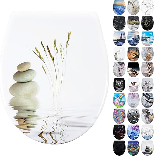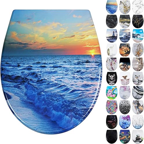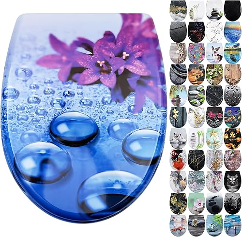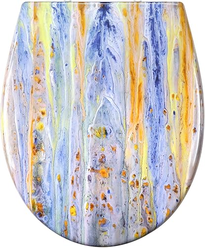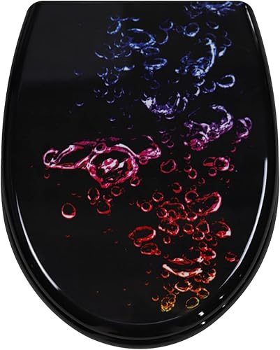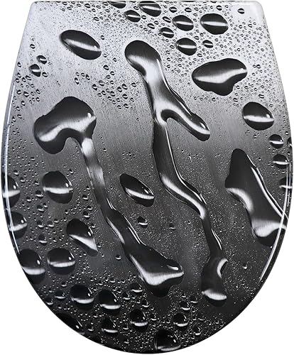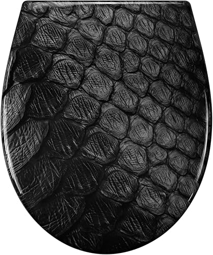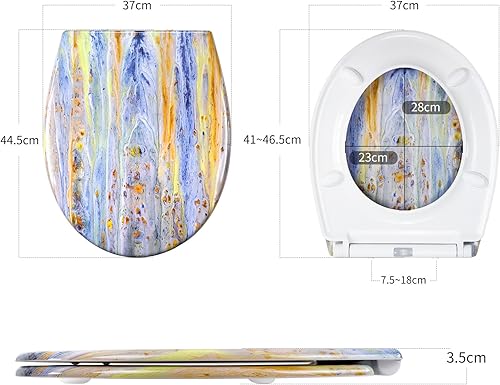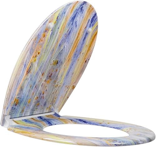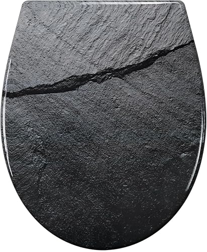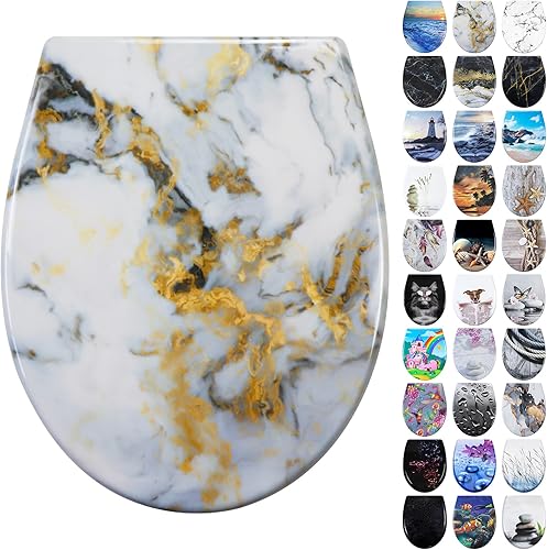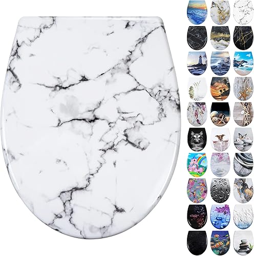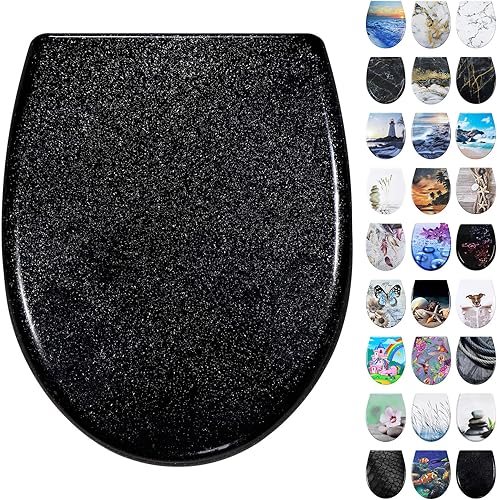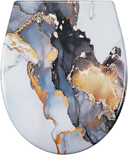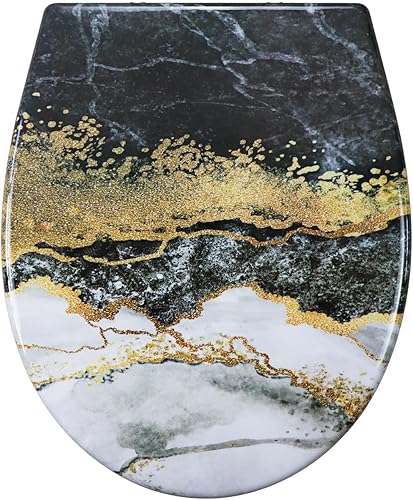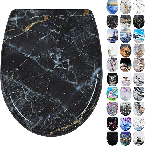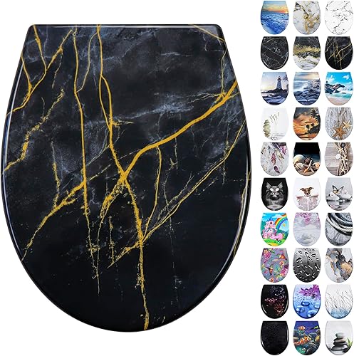 Fanmitrk Toilettendeckel, WC Sitz mit Absenkautomatik, Klodeckel mit Schnellverschluss, Duroplast Klobrille Montage von oben, Toilettensitz mit Motiv, O Form (Schwarz Marmor)