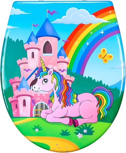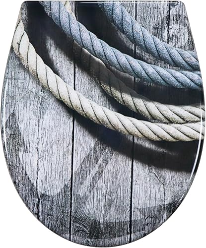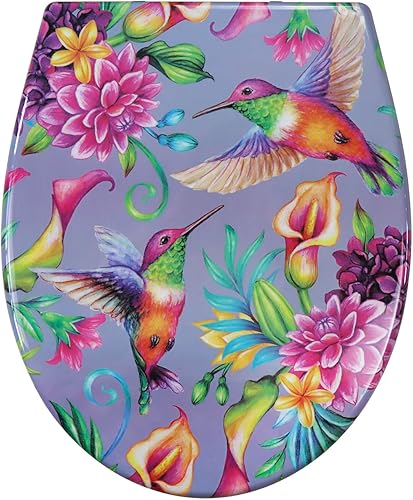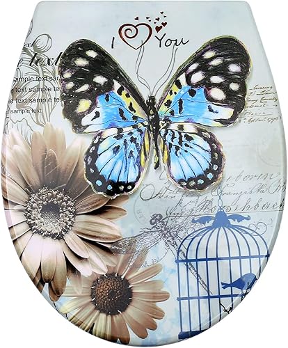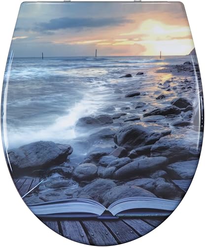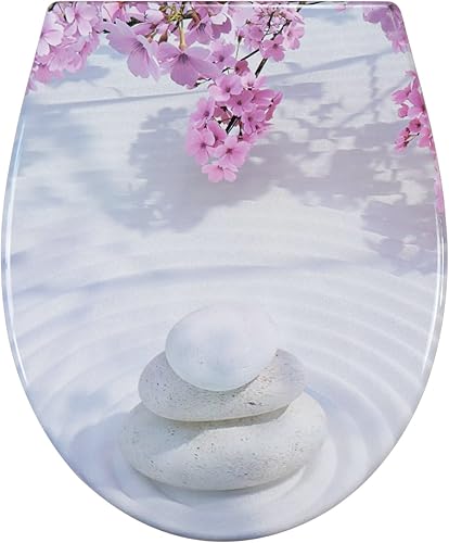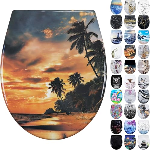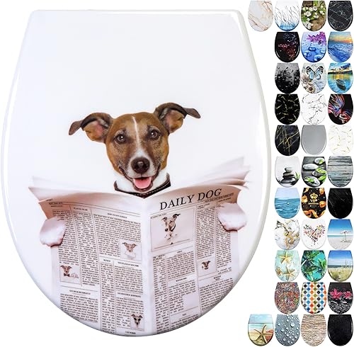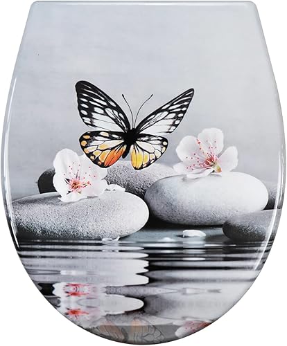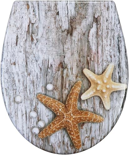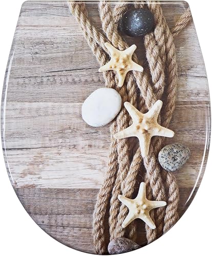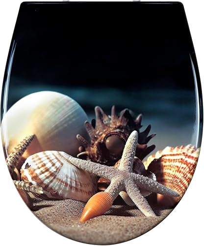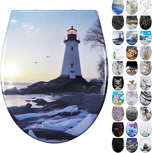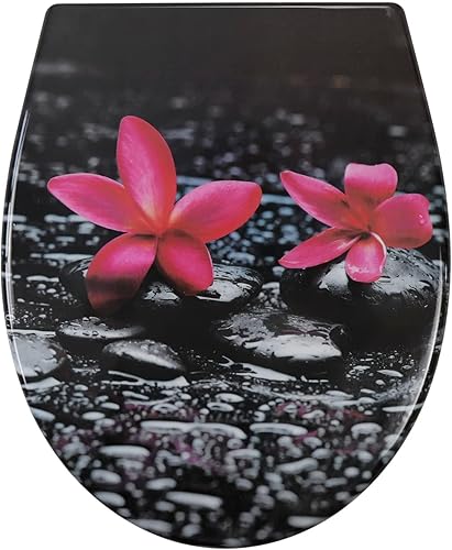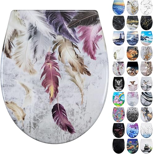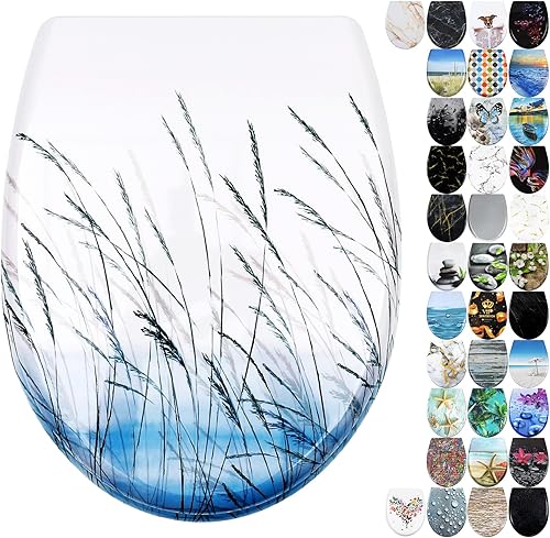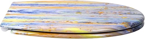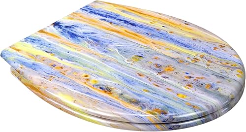 Fanmitrk Toilettendeckel, WC Sitz mit Absenkautomatik, Klodeckel mit Schnellverschluss, Duroplast Klobrille Montage von oben, Toilettensitz mit Motiv, O Form (Schwarz Marmor)