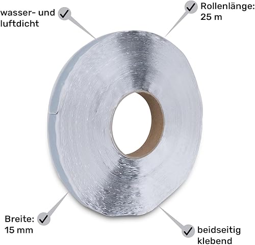 SILISTO Butylband Dichtungsband selbstklebend 15mm x 25m Rolle - Butylrundschnur wetterfest Butylschnur beidseitig klebend Farbe grau - Butyl Dichtband Abdichtungsband Dichtschnur