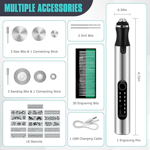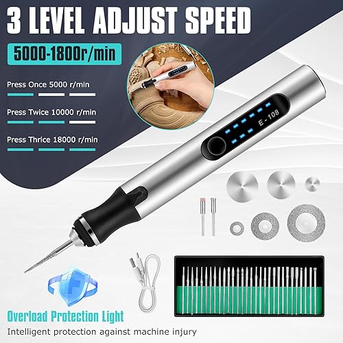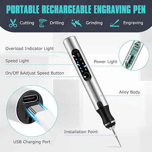 Elektrischer Gravierstift, DIY Gravur Werkzeug Set, Gravierwerkzeugsatz, USB Wiederaufladbar, Tragbare Kabellos Gravurwerkzeug, für DIY Schmuck Metall Glas Kunststoff Holz Keramik Stein Gravur