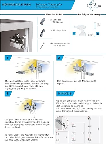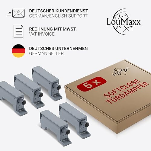 LouMaxx Softclose Türdämpfer 5er Set Schranktür Dämpfer in Grau – Softclose Türdämpfer Schrank zum einfachen Softclose nachrüsten von Schranktüren – für sanftes Schranktürschließen