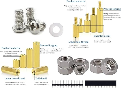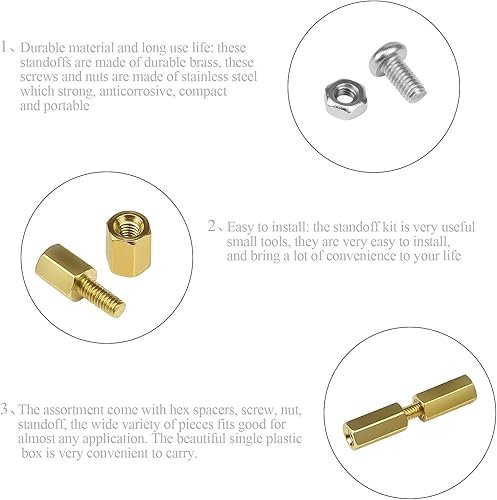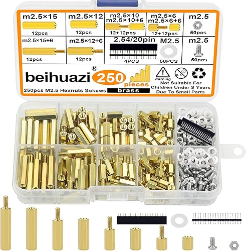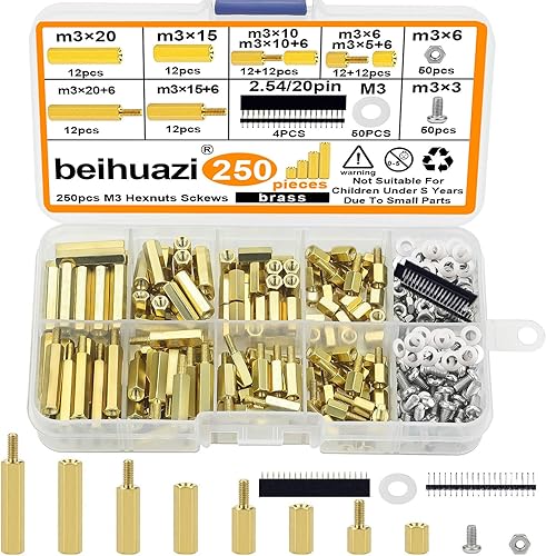 beihuazi® M3 Abstandshalter Hex Distanzhülsen PCB Board/Platinen Männlich Weiblich Gewinde Abstandsbolzen für Raspberry Pi Mainboard (250 Stück Messing)