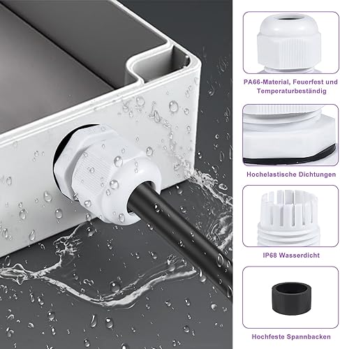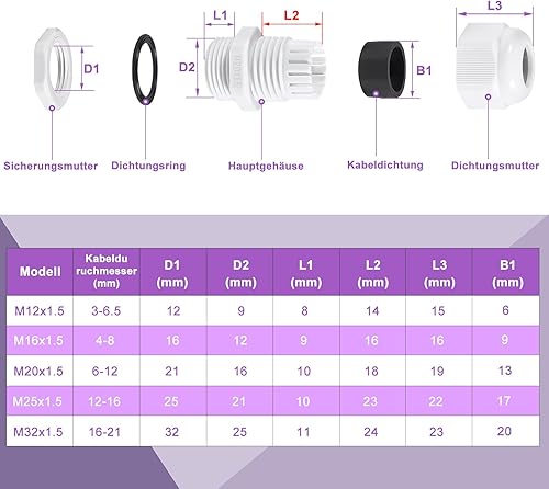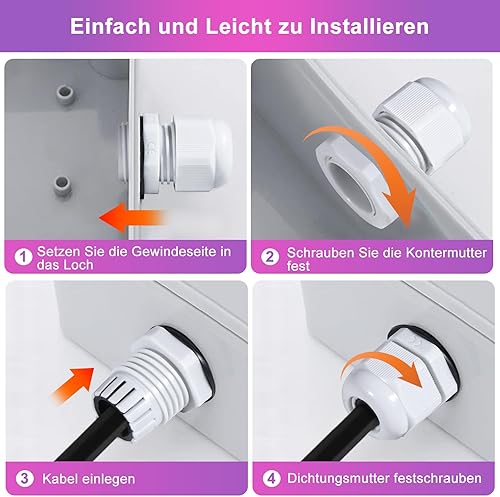CoKeeSun 46 Stück Kabelverschraubung Set, IP68 Kabeldurchführung Wasserdicht M12 M16 M20 M25 M32, Verstellbare Nylon Kabelanschlüsse, Kabelverschraubungen für Outdoor Garten Schaltkasten Abzweigkasten
