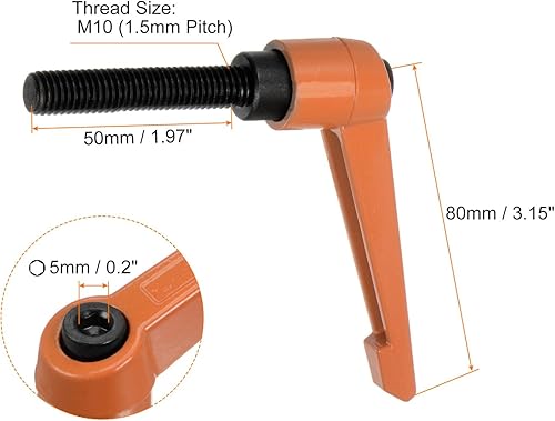 QUARKZMAN 4Stk Einstellbar Klemmung Hebel Handgriffe M10 x 50mm Außengewinde Gewindebolzen Knöpfe Drehschraube Verriegelung Schnellverschluss Ratschen Druckschalter Griff Orange