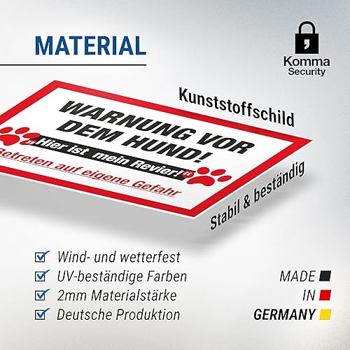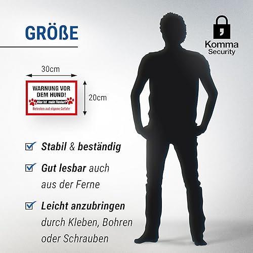 Komma Security Warnung vor dem Hund Schild - hier ist mein Revier Hinweisschild wetterfest Hundeschild Gartentor Einfahrtstor Haustür Türschild Abschreckung Warnschild Einbruchschutz
