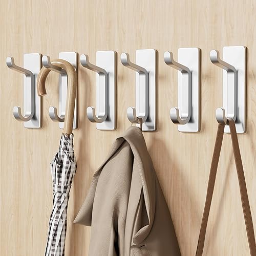 pickpiff Klebehaken Ultra Stark, Hält Bis Zu 6kg, Metall Türhaken Handtuchhaken Nichtrostend, Selbstklebende Haken, Duschhaken Ohne Bohren, Weiß, 4 Pack