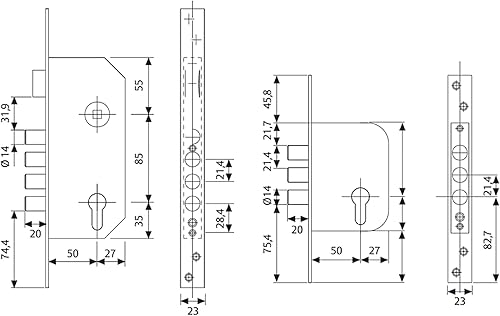 tesa R200B Türschloss mit Bolzen 50 T60 70 mm Messing poliert