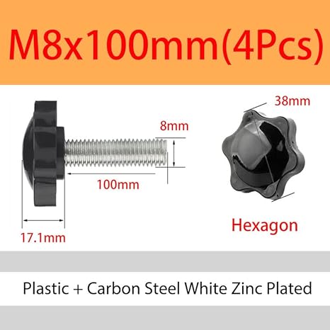 MOOPW Star Schrauben Rändelschrauben Kopf Durchmesser 38mm Knopf Handhaben Spannen Plastik Griff Thread Maschine Klemmgriff M10 x 16mm 4 Pcs