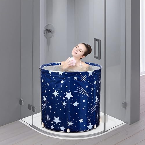 Faltende Badewanne, klappbar Bathtub, Bewegliche Erwachsene Wannenbad, Babybadewanne, Folding Badewanne mit Isolationsbaumwoll, Tragbare Runde Form Familienbadewannen SPA zu Hause (Sternenblau)