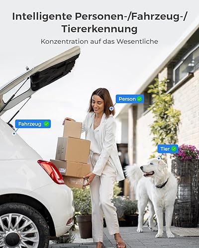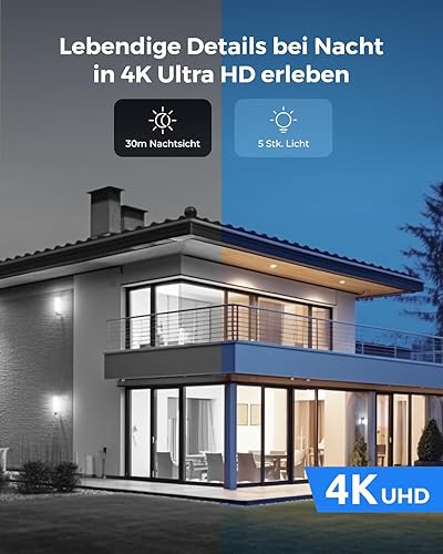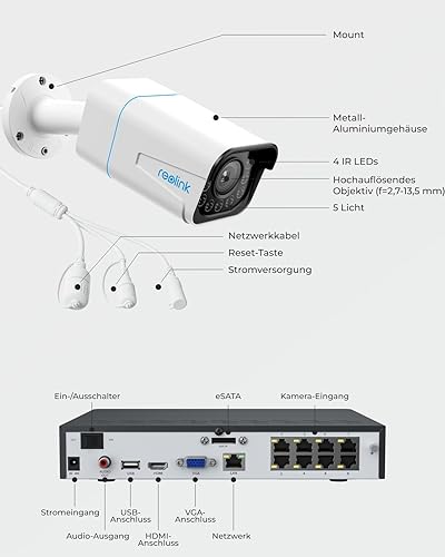 Reolink 4K Überwachungskamera Aussen Set, 5X Optischer Zoom, Personen-/Fahrzeug-/Tier-Erkennung, Spotlights, 2-Wege-Audio,8CH 2TB HDD NVR für 24/7 Aufnahme,Nachtsicht, IP67 Resistent, RLK8-811B4