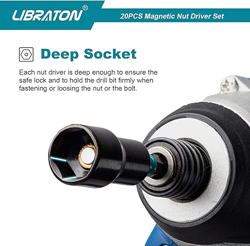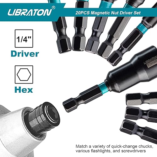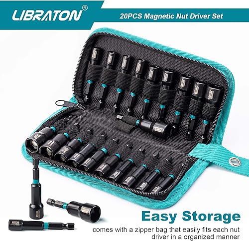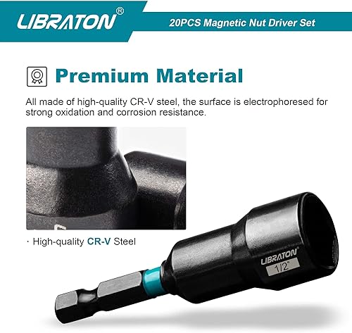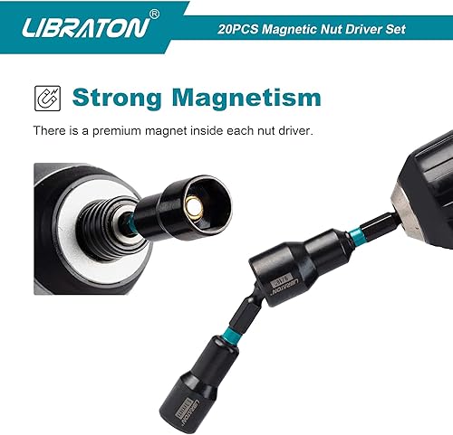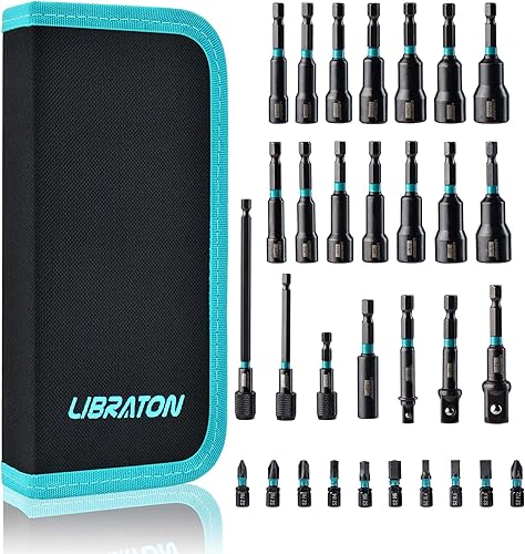 Libraton 21tlg Magnet Sechskant Stecknuss, 6-14mm Steckschlüsselsatz un 1/4''-9/16'' Steckschlüssel Set, Adapter auf 1/4' 1/2' 3/8', Sechskantschaft Magnetische Bithalter für Akkuschrauber