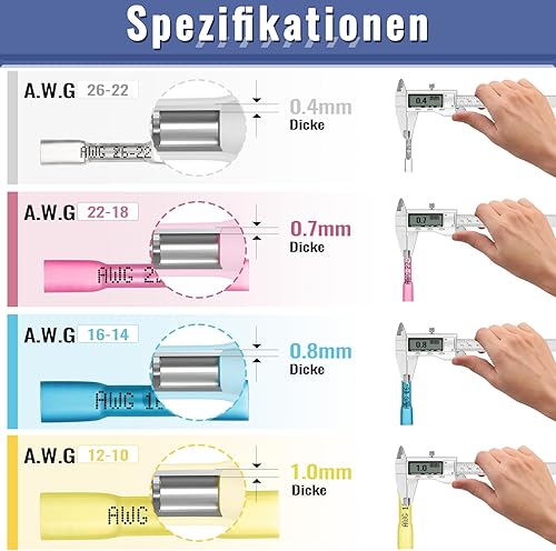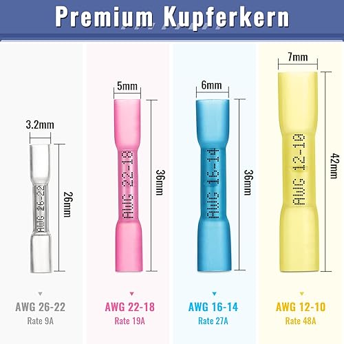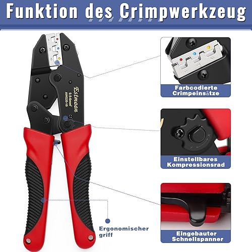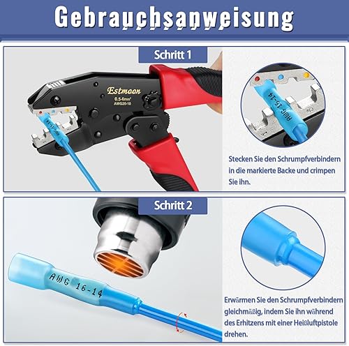 Crimpzange für Schrumpfverbinder, Estmoon Crimpzange Kabelschuhe Kabelschuhzange mit 210 Stück Schrumpf-Stoßverbindern, Crimpzangen geeignet für 0,5mm² - 6mm² (AWG 22-10)