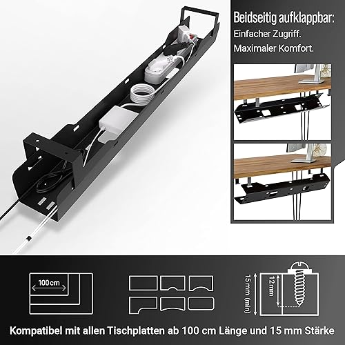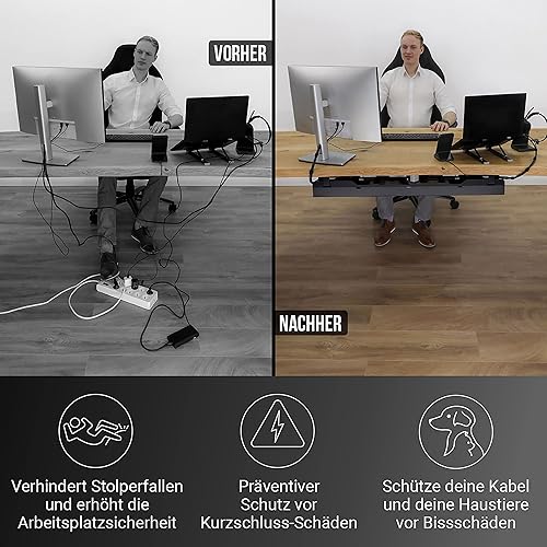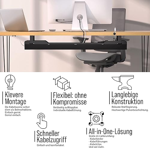 Ultimate Setup® Kabelwanne Schreibtisch für bestes Kabelmanagement - Im Kabelkanal Schreibtisch einfach Kabel verstecken (schwarz)