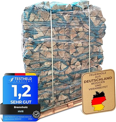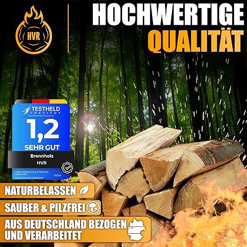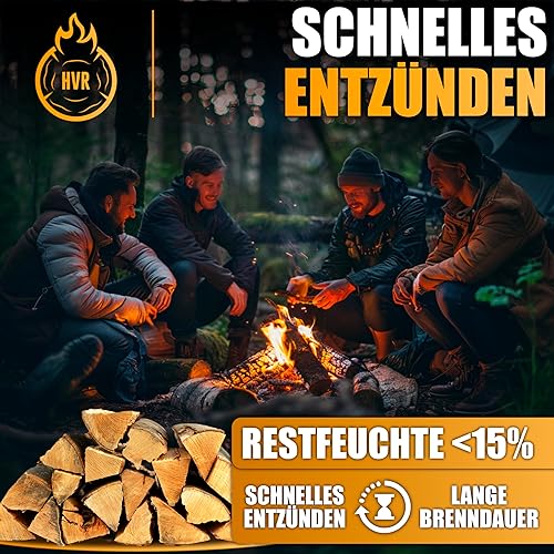 HVR 30 KG Brennholz 100% Buchenholz mit gratis 18 Stück Anzündwolle - Trockenes, naturbelassenes Kaminholz - Scheitlänge 25 cm - Restfeuchte unter 15% - Made in Germany