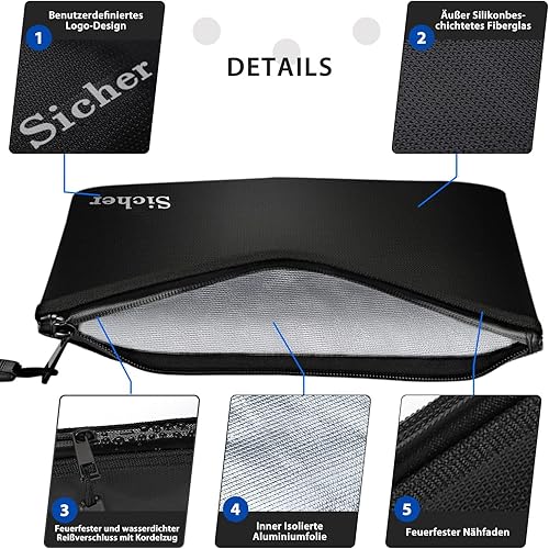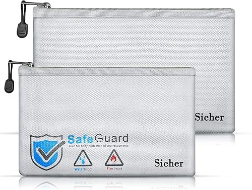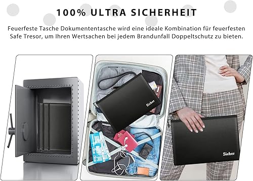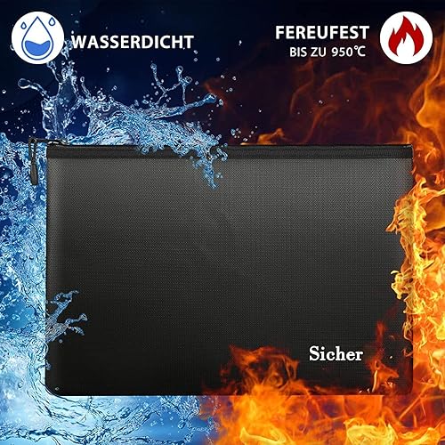 Feuerfeste Tasche 2er Set | Feuersichere Wasserabweisend Dokumententasche Hülle Beutel Behälter für A4 Dokumente Passport Bankdatei Geld Wertsachen | aus Hochwertigem Silikon Fiberglas