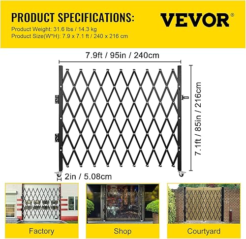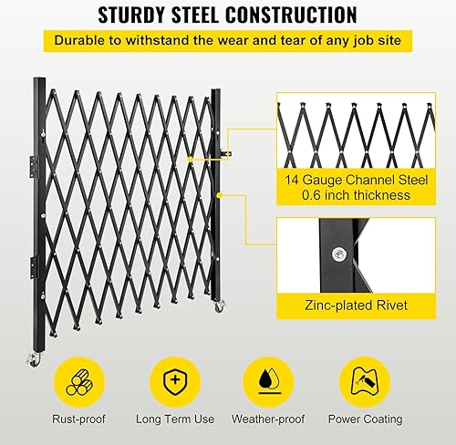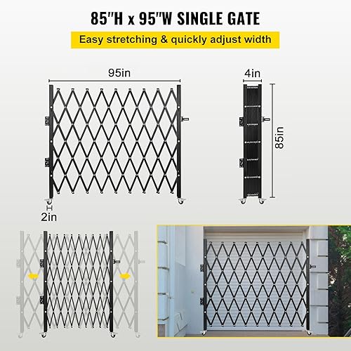 VEVOR Einzelnes Faltbares Sicherheitstor, 48 x 66 Zoll Falttürtor, Akkordeon-Sicherheitstor aus Stahl, Flexibel Erweiterbares Sicherheitstor, Rollendes Barrikadentor, Scherentor mit Vorhängeschloss