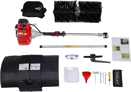 DIFU Motorbesen Benzin 52ccm mit Schutzbrille, Upgrade Schneefräse Benzin Kehrmaschine Kit, 2,3 PS Handkehrmaschine Schneeschieber, Luftgekühlt 2-Takt Benzin Kehrbesen für Draußen