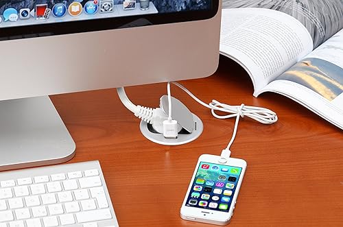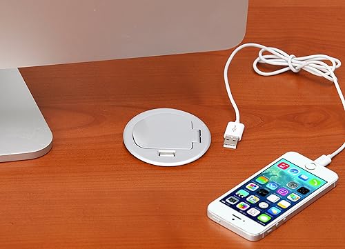 UNITEC Einbausteckdose für Tischplatte, Tischsteckdose, 1xSchuko + 1xUSB, kompakte Abmessungen, einfache Installation, Schutz durch Deckel zum Schieben aus Edelstahl