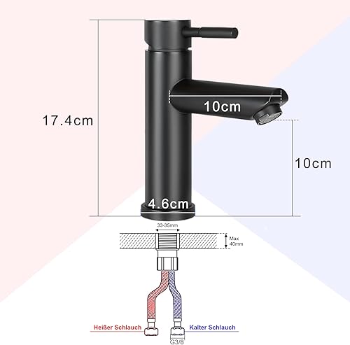 Mursche Wasserhahn Bad Waschtischarmatur Waschbecken: Armatur Schwarz Warm- und Kaltwasserhahn Badezimmer Mischbatterie Hochdruck Waschtischwasserhahn Einhebelmischer Badarmatur für Garten Küche