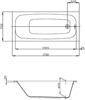 BADOSAN Badewanne RIVIERA | Design Badewanne Made by Hoesch | Acryl | 170x70cm | KOMPLETTPAKET mit Wannenträger und Ablaufgarnitur