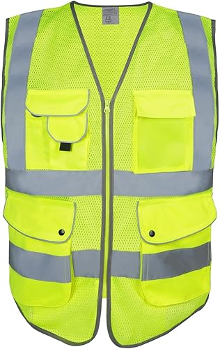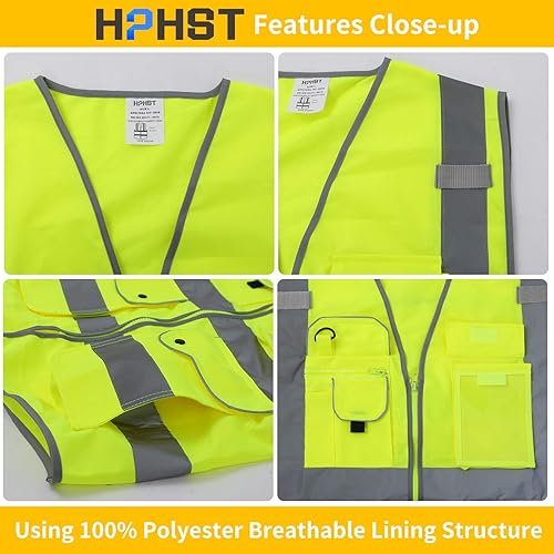 HPHST Warnweste für Herren and Damen Hohe Sichtbarkeit Fahrradweste mit Reißverschluss Reflektierende Weste Arbeitsweste EN ISO 20471