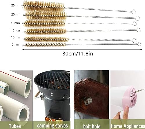 6 Stück Messingrohrreinigungsbürste, Messingdraht-Rohrbürsten 8-25 mm Messing Drahtbürste Set Multifunktionale Reinigungsbürsten mit langem Griff für Rohrrohr Zylinder Bohrungen Reinigung