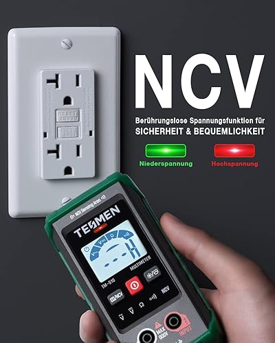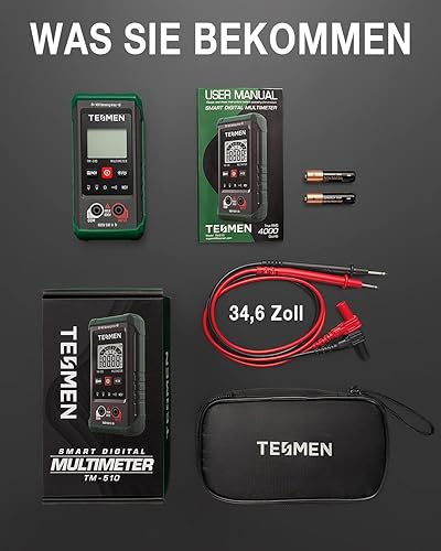 TESMEN TM-510 Digital Multimeter, 4000 Zähler Messgerät, Voltmeter mit Automatischem Messbereich, Intelligente Messung; Spannungsprüfer Misst AC/DC-Spannung, Widerstand, Durchgang – Grün
