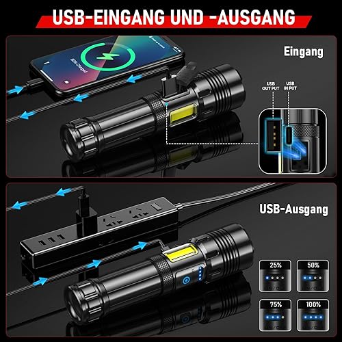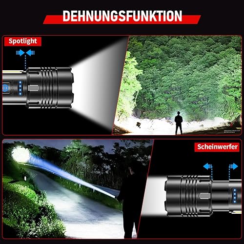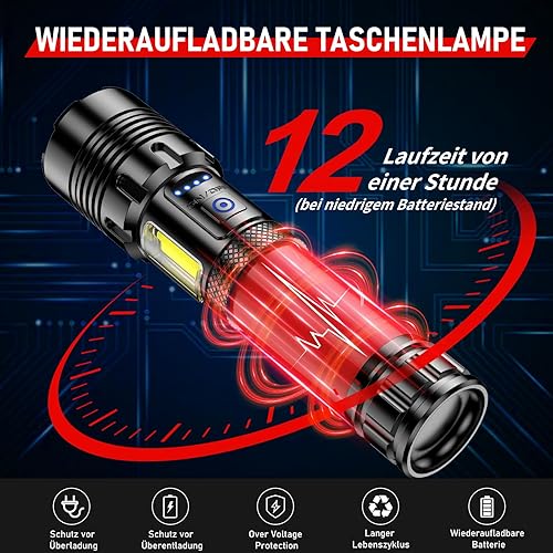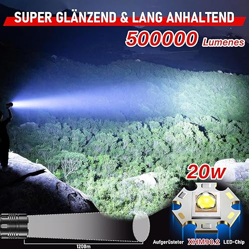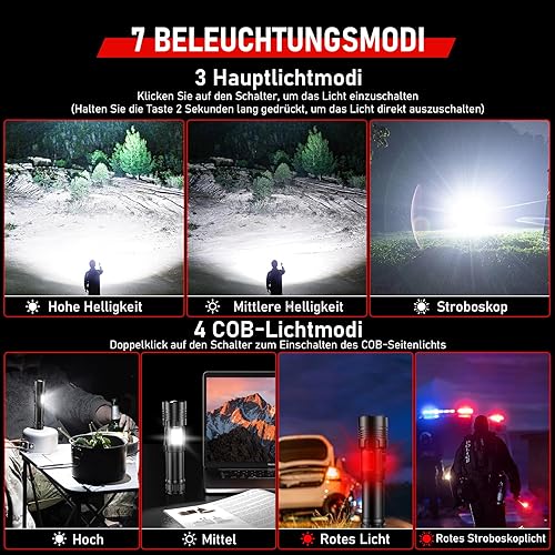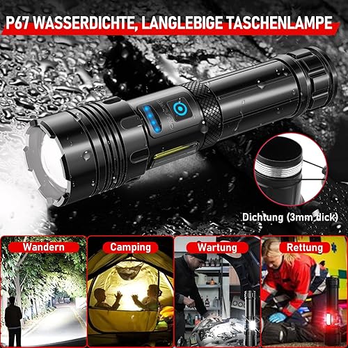 Shadowhawk Taschenlampe Led Aufladbar 500000 Lumen, XHM90.2 Led Taschenlampe Extrem Hell Mit COB Arbeitsleuchte USB Taschenlampen, 7 Modi Starke Taschenlampe Batteriebetrieben für Camping Notfälle