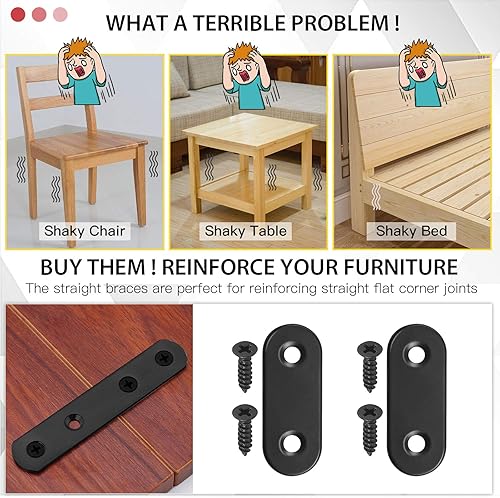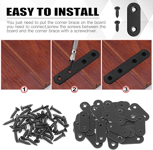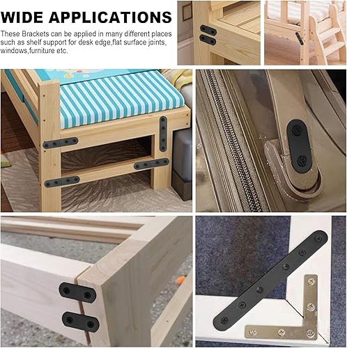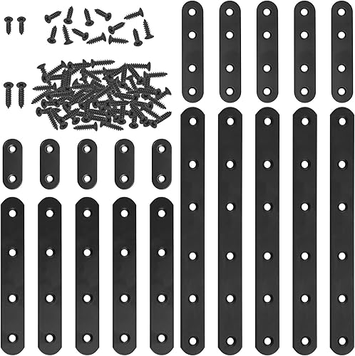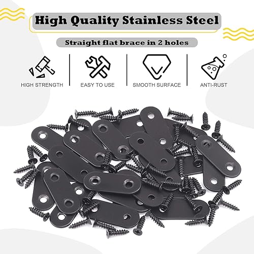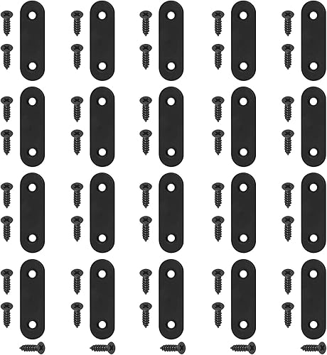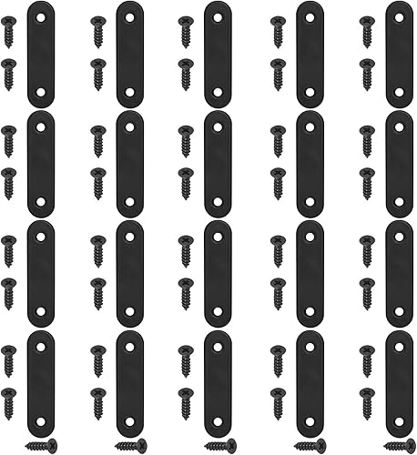 Hilitchi gerade Klammer Edelstahl schwarz gerade Ecke Klammern gerade flach Strebe Reparatur flache Platten mit Schraube (40mm, 20pcs)