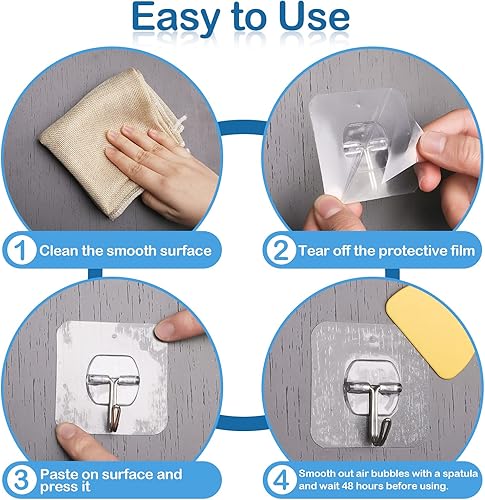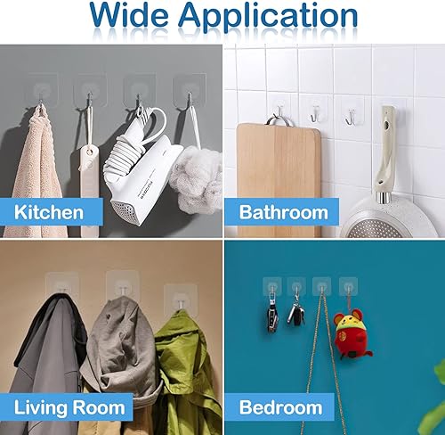 Weysoo Klebehaken Extra Stark, 4 Stück Haken Selbstklebend, Selbstklebende Haken Transparent, Wandhaken Selbstklebend, Haken Ohne Bohren, Klebehaken Decke für Bad Küche Büro Schlafzimmer