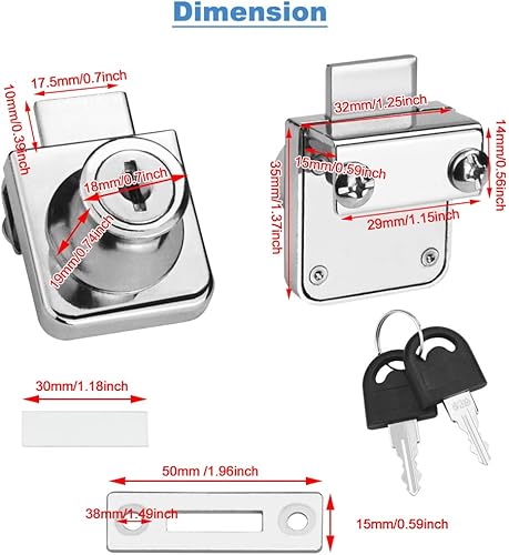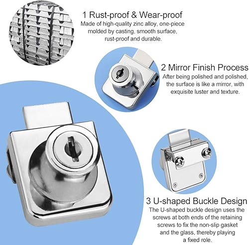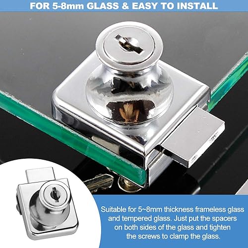 SNAGAROG 2 Stück Glasschrankschloss Einzelnes Glastürschloss Cam Lock Schrankschloss Glasvitrineschloss Möbelschloss Glastüren Sicherheitsschloss mit 4 Schlüssel für Türschrank Schlüssel Vitrine