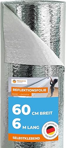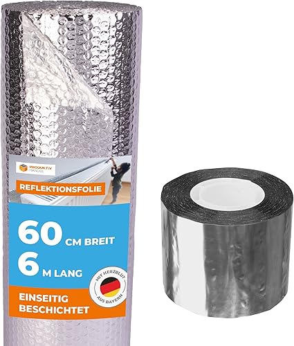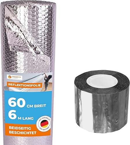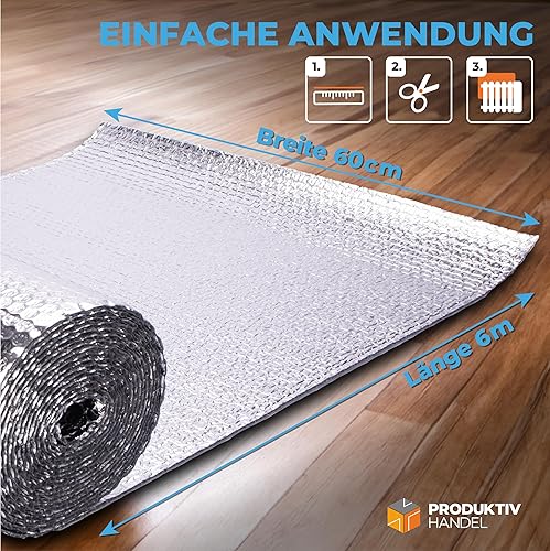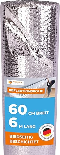 Isolierfolie 600 cm x 60 cm Thermofolie - doppelt beschichtet | Dämmfolie für maximale Wärmedämmung | Reflektionsfolie für Heizkörper | Blasenfolie gegen Hitze und Kälte zur Isolierung Kälteschutz