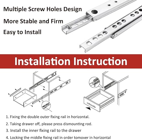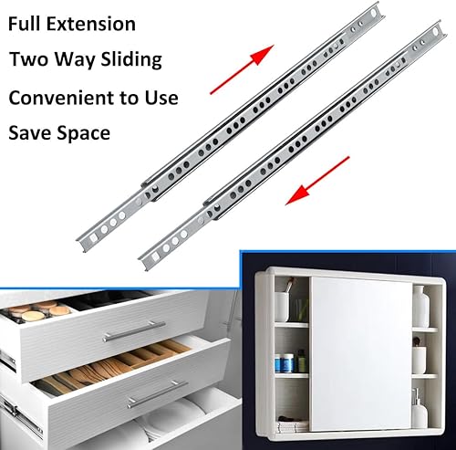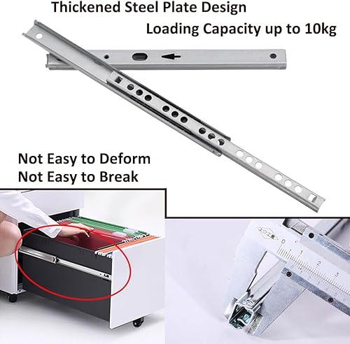 MOCNT 2 Paar (4 Stück) 374mm Schubladenführungen 17mm Nut Schubladenschienen Vollauszug Schubladenauszug Kugellager Stahl Schienen Schubladen Auszugsschienen Kabinett