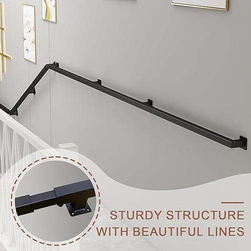 Gorssen 150cm Handlauf for Treppen, Schwarz Industrieschmiedeeisen Rohr Banister Treppengeländer Innen und Außen, Matte Black Metal Treppe Treppengeländer