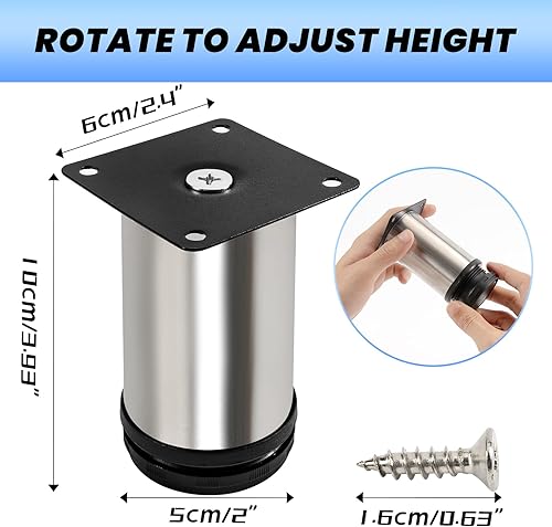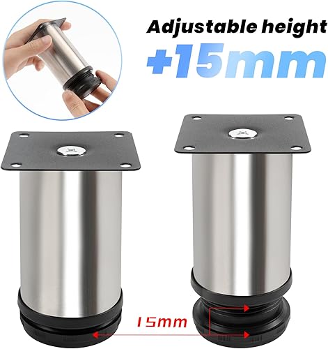 4er Set Möbelfüße Verstellbar in Silbernen, Höhenverstellbare Füße für Möbel, 100 mm Furniture Feet